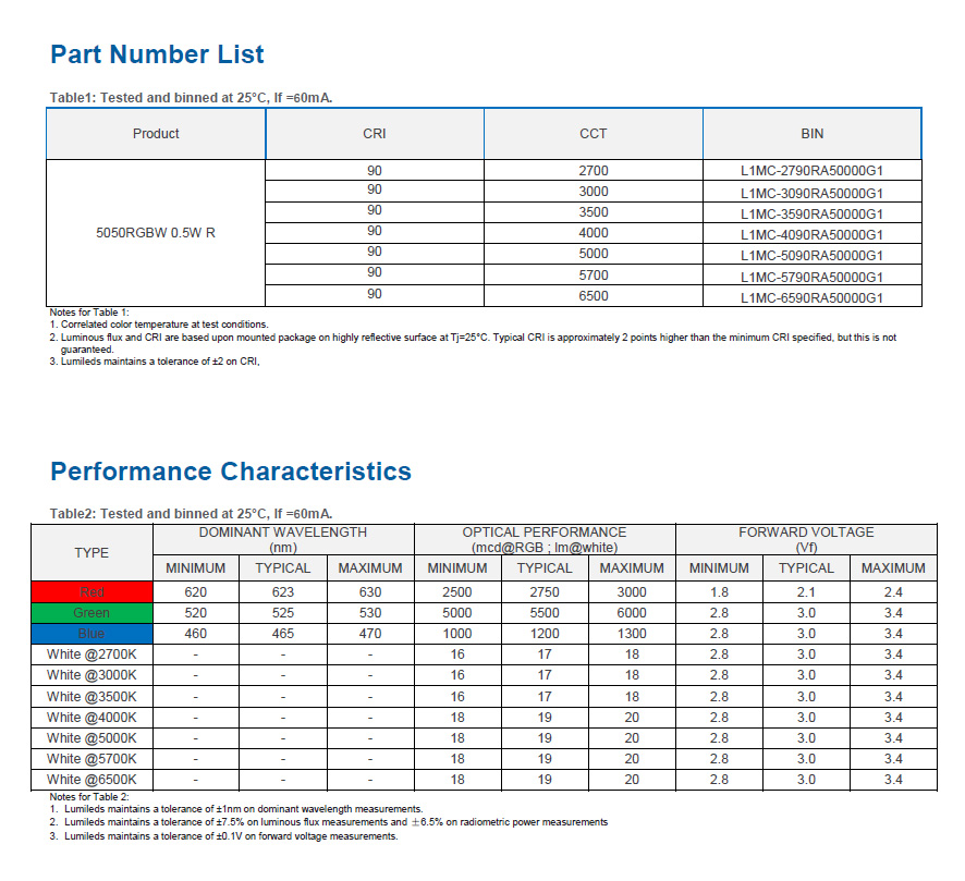 LUMILEDS 5050RGBW 四合一led燈珠0.5W RA90